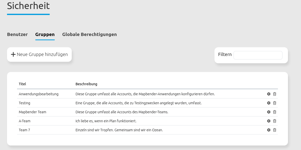 Dort bietet Mapbender ebenfalls eine Übersicht über alle Gruppen an:
