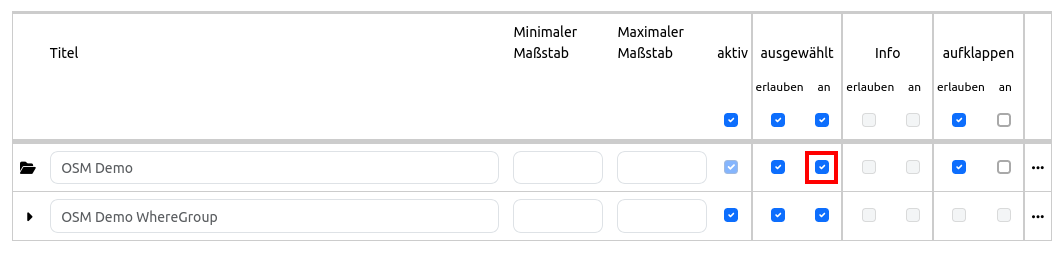 Konfiguration aktiver ausgewählter root-Layer - Thema ist aktiv beim Start: