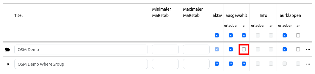 Konfiguration nicht aktivierter ausgewählter root-Layer - Thema ist beim Start nicht aktiv: