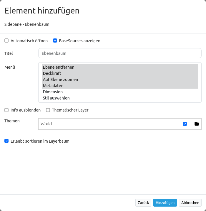 Konfiguration des Kartenelements für den thematischen Ebenenbaum.