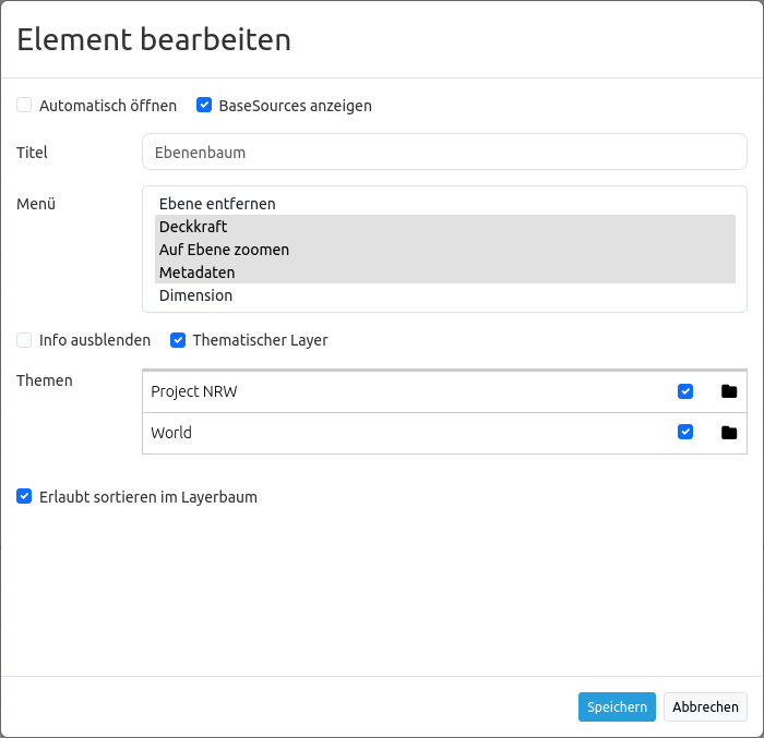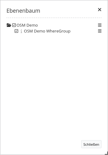 Wenn Automatisches Öffnen aktiv ist, wird der Ebenenbaum beim Anwendungsstart geöffnet. Der Titel des Elements ermöglicht die Unterscheidung mehrerer eingebundener Ebenenbäume.