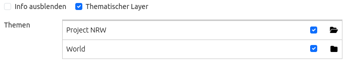 Wenn wir im Thema “World” die Standardeinstellungen beibehalten und im Thema “Project NRW” die anderen Optionen aktivieren, sieht die Konfiguration des Elements wie folgt aus: