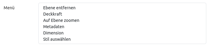 Über Menü kann eine Auswahl von Funktionen aktiviert werden, die dann im Ebenenbaum zur Verfügung gestellt werden.
