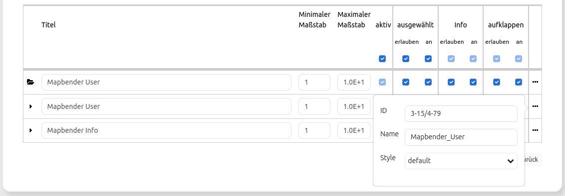 Um weitere Layereigenschaften anzuzeigen, gibt es im Layerset-Reiter bei der Instanz-Konfiguration neben jedem Layer ein Icon mit drei Punkten. Klicken Sie auf das Icon, damit ein Informationsfenster erscheint: