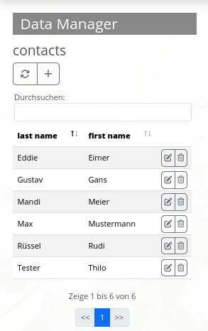 Der Data Manager ähnelt in seiner Funktionalität dem Digitizer. Allerdings speichert das Element nur Sachdaten und keine Geodaten. Es kann zur Pflege von Referenztabellen verwendet werden, beispielsweise einer Tabelle mit Kontaktinformationen.