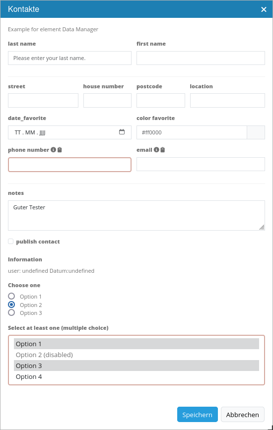 Der Data Manager kann beispielsweise genutzt werden, um Kontaktinformationen zu speichern.