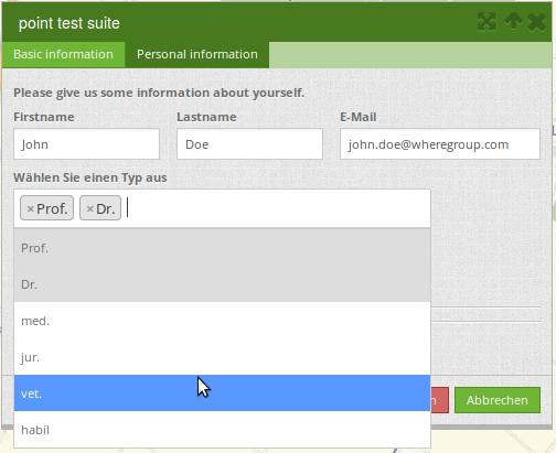 Das folgende Beispiel zeigt, wie Daten beim Speichern in eine zusätzliche Attributspalte geschrieben werden können. Hier geschieht das mit der Spalte “interests” und dem festen Wert “maps”. Beim Speichern wird der feste Wert in die Tabelle gespeichert und kann z.B. über einen Filter für die selektierte Anzeige genutzt werden.