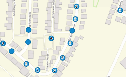 Bereits erfasste Objekt können dupliziert werden. Dies geht über einen Duplizieren-Button innerhalb des Erfassungsfensters des aktuellen selektierten bereits vorhandenen Features, über das Context-Menu und die Treffertabelle. Damit das neue Objekt in der Karte besser erkannt werden kann ist hier eine farbliche Hervorhebung definierbar.
