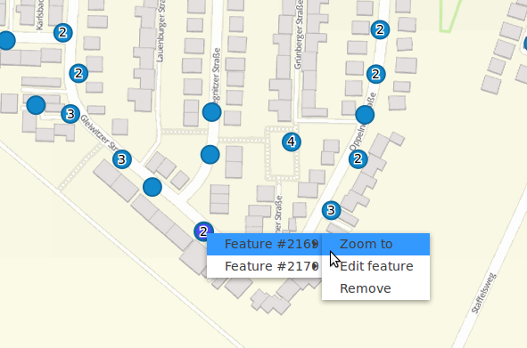 Da zum Zeitpunkt des Editierens die Geometrie noch nicht persistent in der Datenbank ist, kann auf sie nicht als Feature zugegriffen werden, sondern nur über das jeweilige “Item”, eine interne Digitizer Speicherstruktur. Diese “Items” orientieren sich am Formular und den dort angegebenen Attributen.