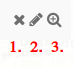 Gezeichnete Skizzen können individuell gelöscht [1] oder bearbeitet [2] werden. Außerdem besteht die Möglichkeit, auf einzelne Geometrien zu zoomen [3].