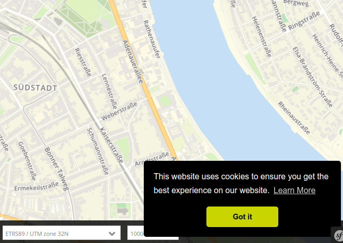 Anwendungen unterstützen die Anzeige eines Cookie-Banners, welches in der Mapbender-Konfigurationsdatei parameters.yaml eingerichtet werden kann. Wir nutzen dazu den Code von Cookie Consent, ohne dass dabei ein Aufruf ins Internet gestartet wird.