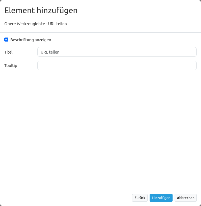 Das Teilen von URLs kann durch den Einbau eines entsprechenden Elements vereinfacht werden. Dieses wird als Button in der oberen Werkzeugleiste oder der Fußzeile eingebunden.