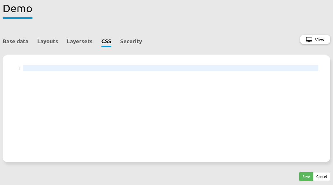 Mapbender offers an CSS editor for every application which easily allows you to change its style (colors, sizes, icons, …). It is possible to define additional CSS classes that will overwrite the default style. You can use scss in the editor. And you can refer to an scss-file in your bundle.
