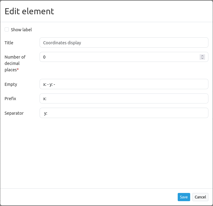Title: Title of the element. It will appear next to the coordinates if “Show label” is activated.