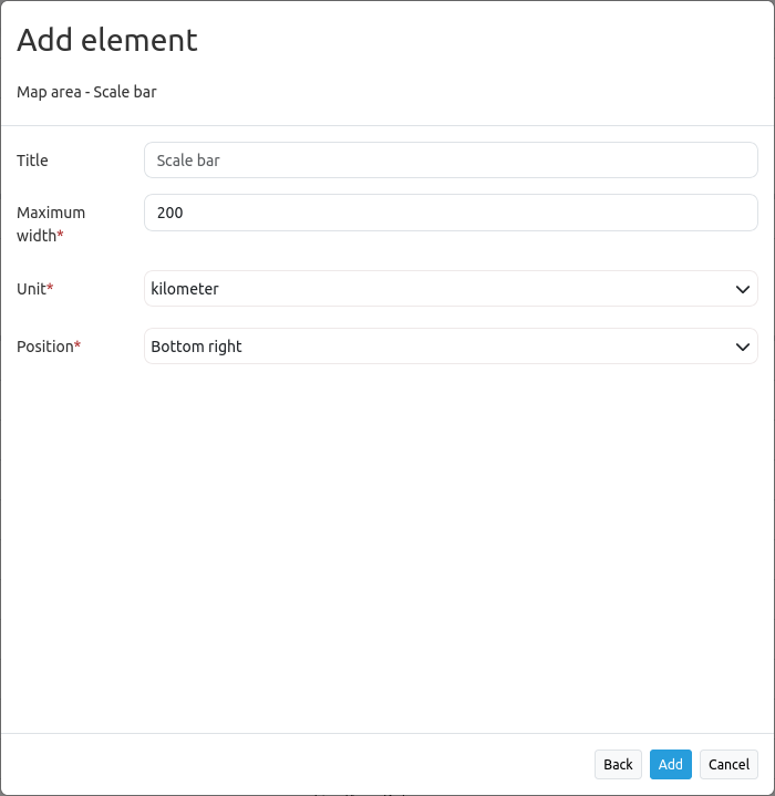 Maximum width: The maximum width of the scale bar (mandatory field; default: 200px).
