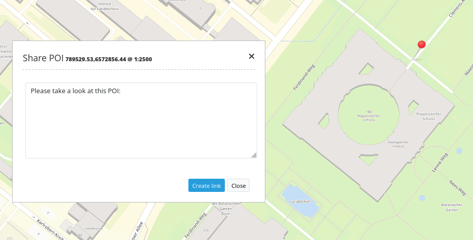Generate POI-URLs (aka meeting points) suitable for e-mail. The generated point is projected and displayed in the coordinate system of the map.