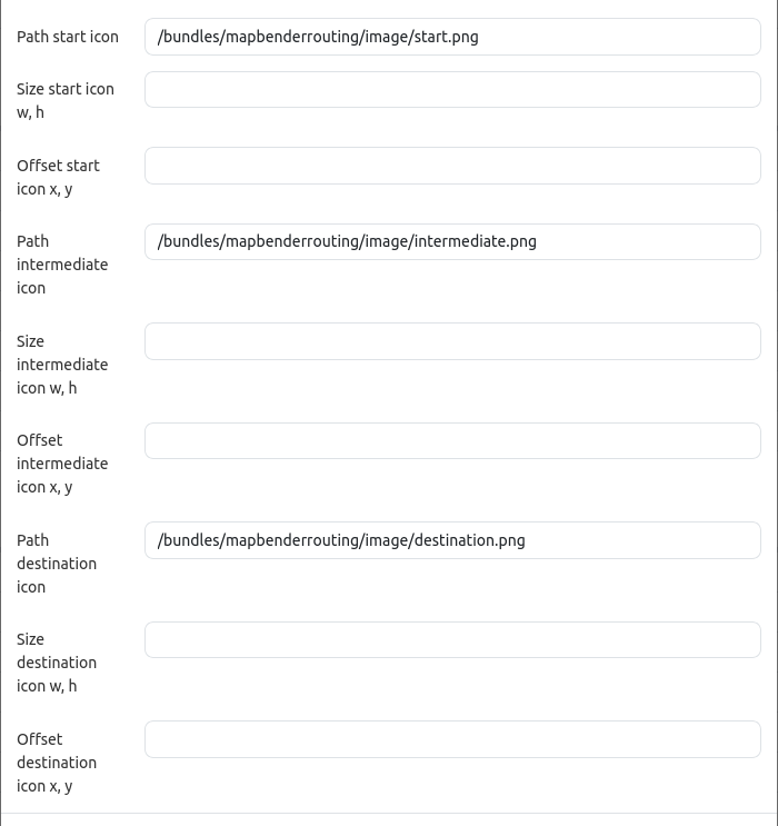Path start icon: Customize the start icon (default: /bundles/mapbenderrouting/image/start.png).