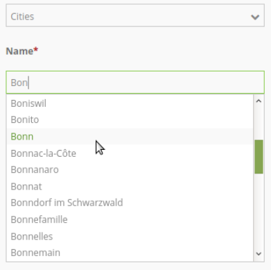 label: City # caption of the search field