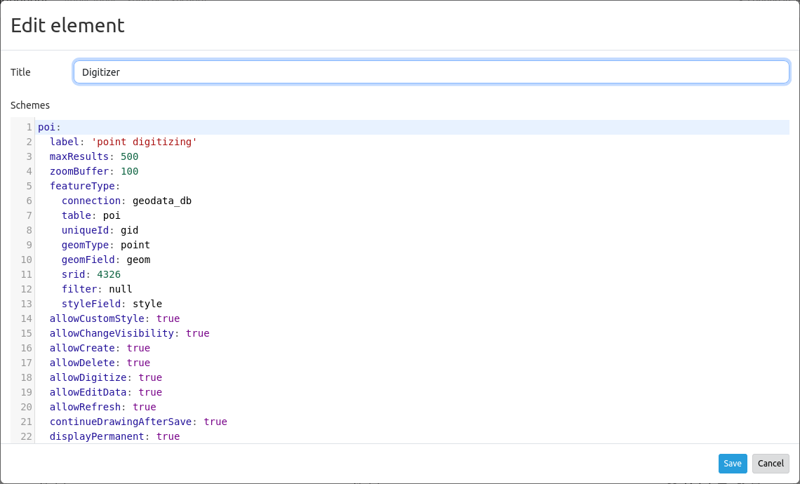 allowDigitize: true # Allow geometry creation and editing (default true)