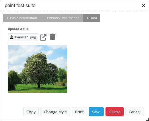 Nach dem Speichern eines Objekts kann ein Refresh der Karte über die Option refreshLayersAfterFeatureSave aktiviert werden. Über diesen Parameter werden die definierten Layer-Instanzen aus dem Karte (Map)-Element neu geladen. Damit werden Änderungen in WMS-Diensten direkt in der Karte sichtbar. Dieses Event wird nur gestartet, wenn Speichern aus dem Attributdialog verwendet wird.