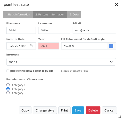Jedem Eingabefeld können, unabhängig vom Typ, CSS-Verhaltens- und Stylinginformationen zugewiesen werden. Dies kann z.B. genutzt werden, um wichtige Felder hervorzuheben oder ein Attributfeld beim Bearbeiten eines anderen Feldes zu füllen.