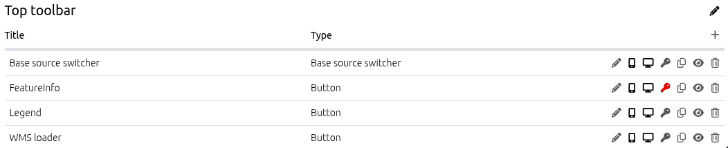 3. Every element has a mapbender-button-key Restrict element access button. Use it for the element that should be only availale for selected users/groups.