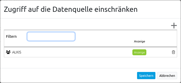 Button einen Dialog, der ein explizites Konfigurieren der Ansehen-Regel in Rechteverwaltung für Benutzer und Gruppen ermöglicht.
