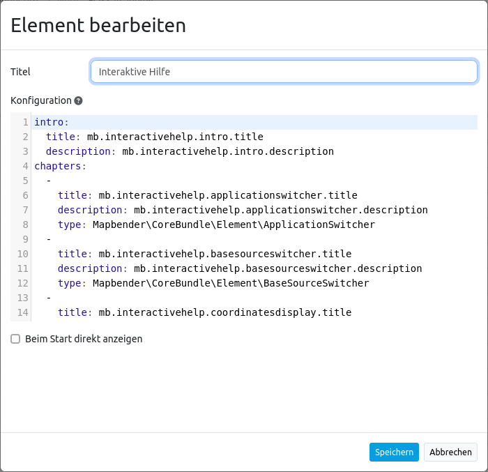 Beim Start direkt anzeigen: Schaltet ein/aus, ob die Interaktive Hilfe beim Start der Anwendung automatisch geöffnet werden soll (Standard: aus).